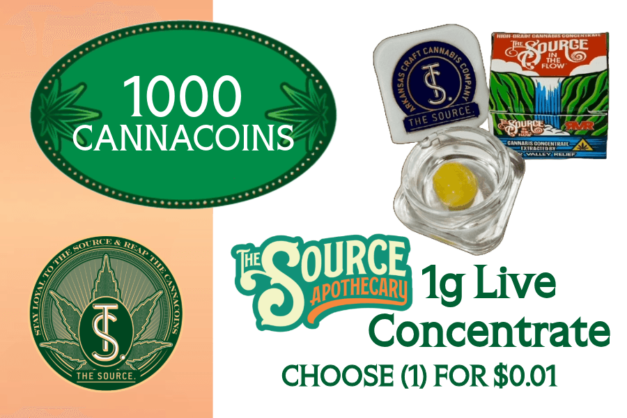 Accumulate 1000 CannaCoins and redeem to get one The Source Apothecary 1g Live Concentrate for $0.01.