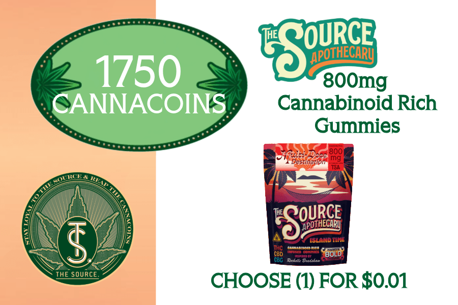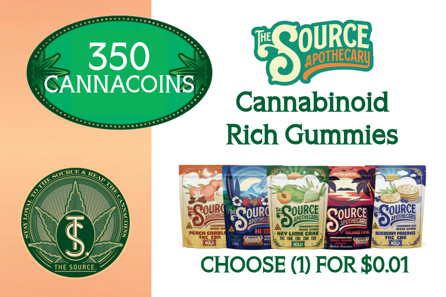 Accumulate 350 CannaCoins and redeem to get The Source Apothecary Cannabinoid Rich Gummies for $0.01.