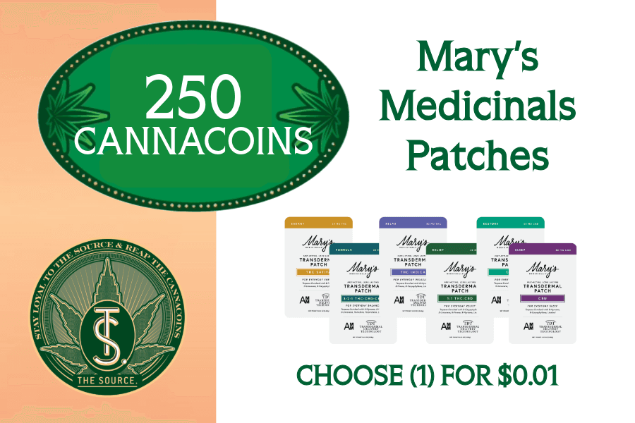 Accumulate 250 CannaCoins and redeem to get one Mary's Medicinals Transdermal Patch for $0.01.