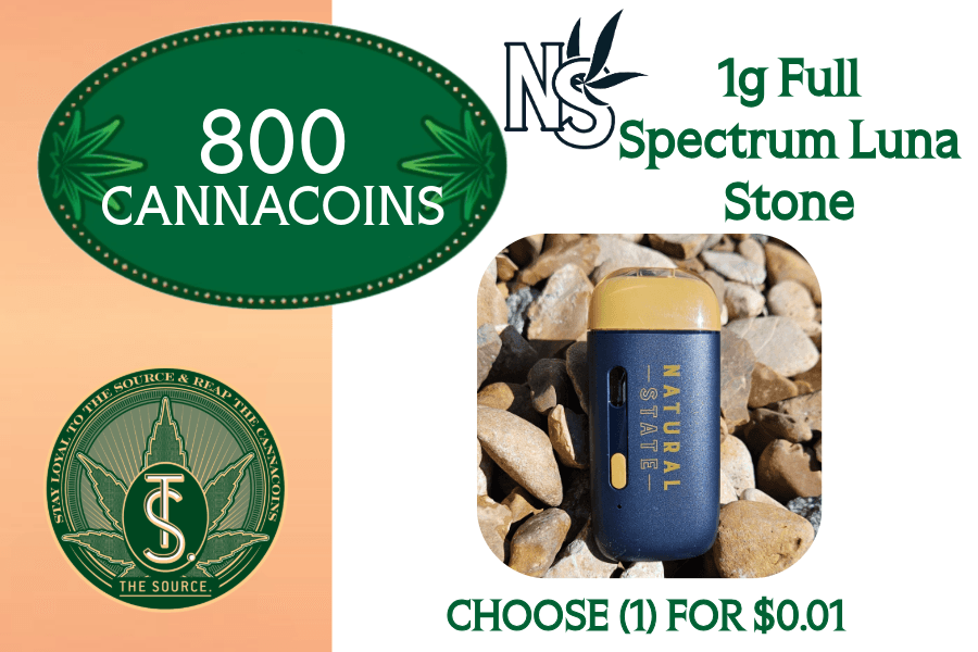 Accumulate 800 CannaCoins and redeem to get one Natural State Medicinals 1g Full Spectrum Luna Stone disposable vape for $0.01.