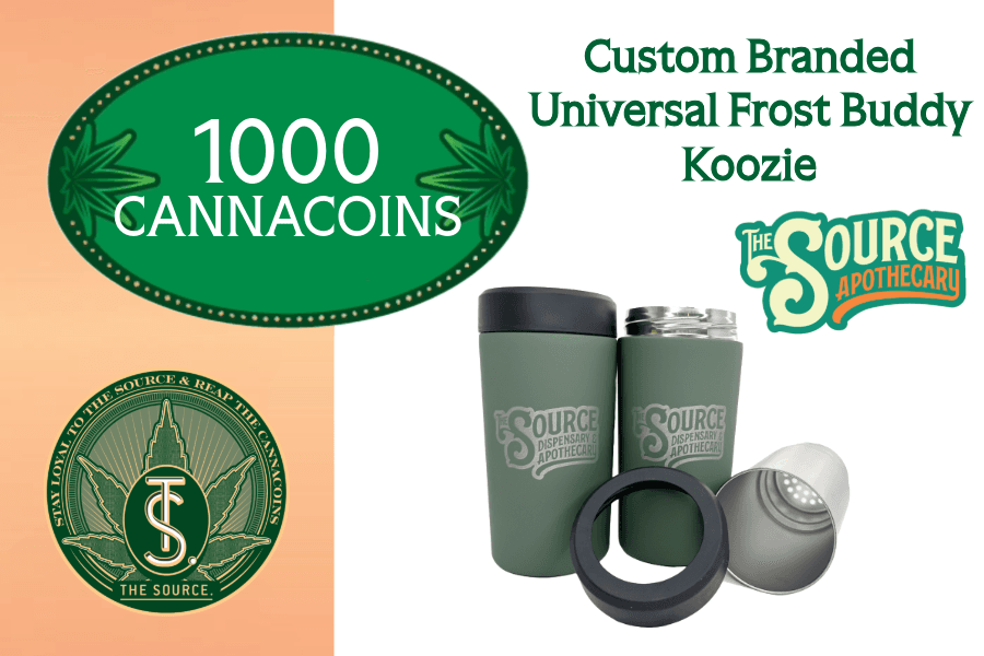 Accumulate 1000 CannaCoins and redeem to get one TSA custom branded universal Frost Buddy koozie.