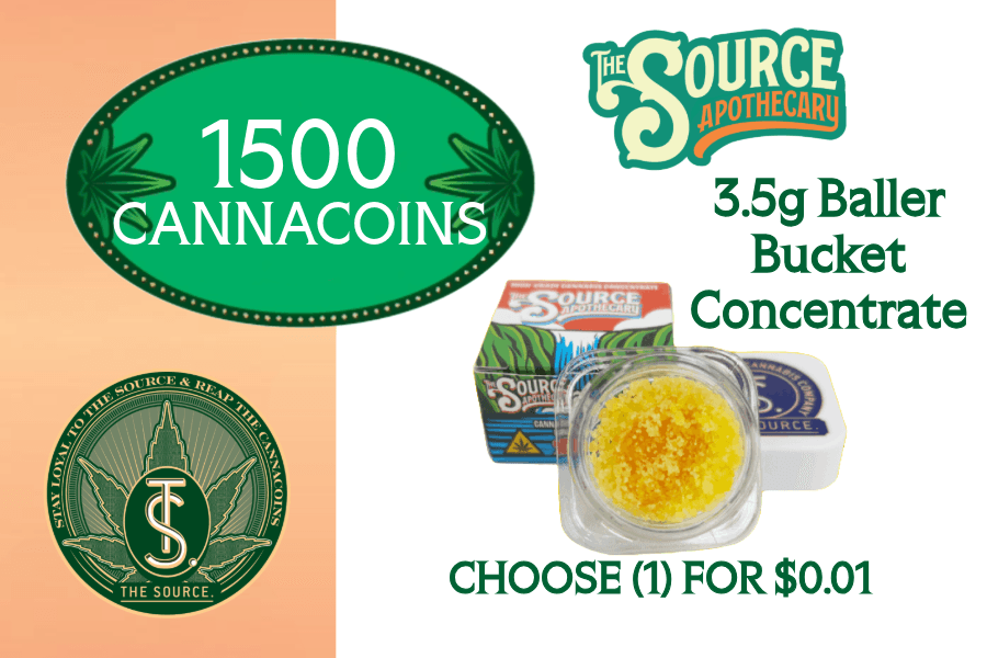 Accumulate 1500 CannaCoins and redeem to get one The Source Apothecary 3.5g Baller Bucket Concentrate for $0.01.